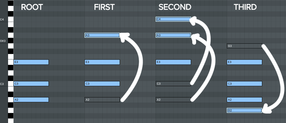 Inversions are first on the list as this is probably the fastest and most basic way you can add interest to your chord progressions.