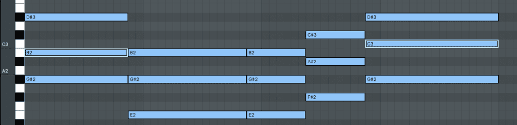 - And the final chord I moved the root note up an octave (first inversion)