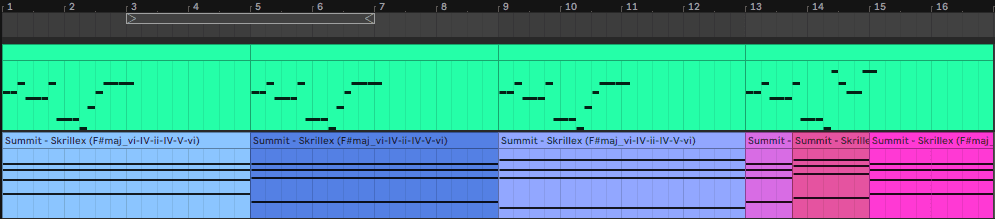 The Skrillex – Summit melody is a perfect way to show changes in harmony.